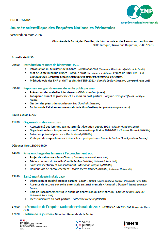 Nous organisons une journée scientifique de présentation et de discussion autour des résultats des Enquêtes Nationales Périnatales, qui se tiendra :